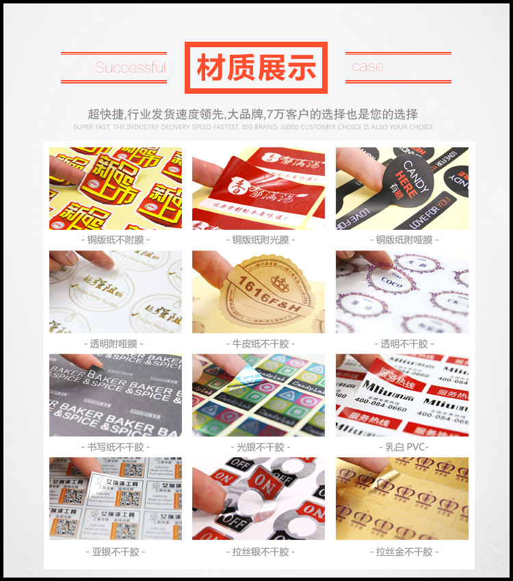 彩色铜版纸不干胶贴纸