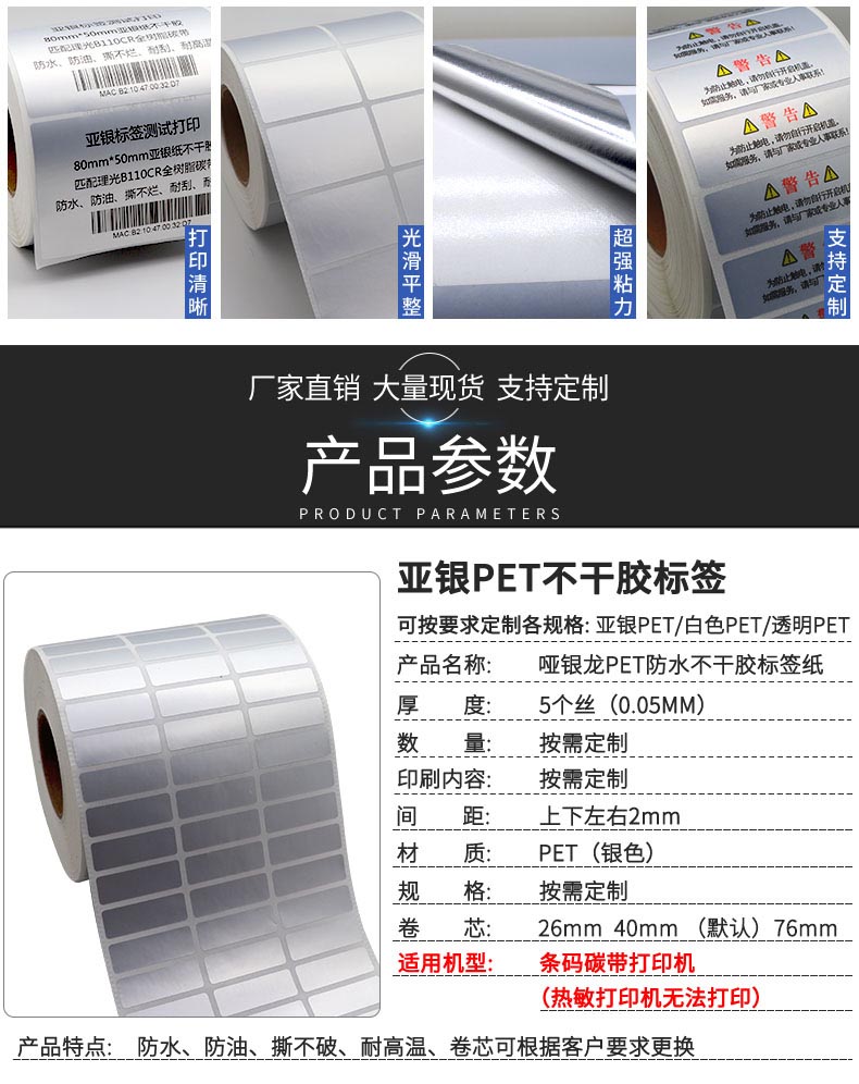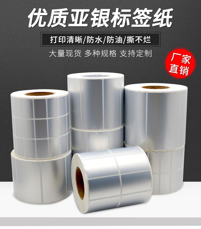 哑银标签纸亚银不干胶标签100*90*80*70*60*50*40*30*20*10固定资产防水防撕条码打印贴纸可定做空白pet标签